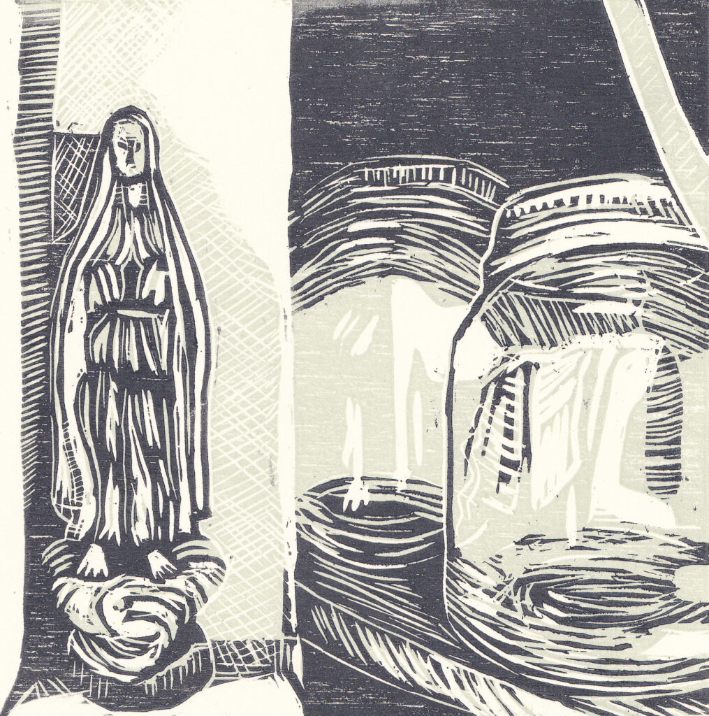 De houtdukken zijn 15 x15 cm. gedrukt in een oplage van 7 in 2024.